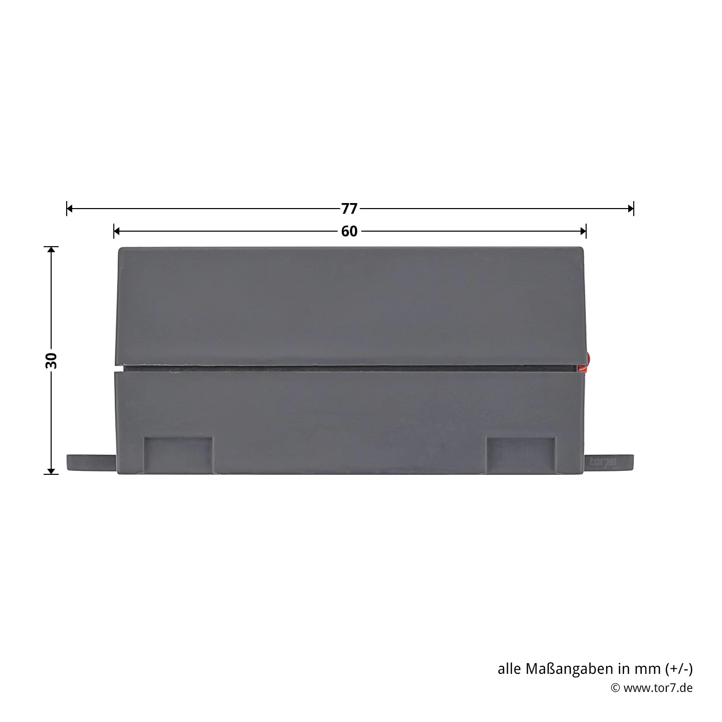 Die Verwendung ist bei allen Torantrieben nur in geschlossenen Räumen zulässig. Das separate Gehäuse aus Kunststoff dieses 1-Kanal-Empfängers HE 1 hat eine 3-adrige und steckbare Anschlussleitung von 50 Zentimeter Länge. Seine Betriebsspannung beträgt 24 Volt Gleichstrom (24 V DC) und der Funktionsimpuls 0,5 Sekunden. Der Hörmann 1-Kanal-Empfänger HE 1, 26,975 MHz, misst in Breite x Höhe x Tiefe 60 mm x 29 mm x 29 mm.