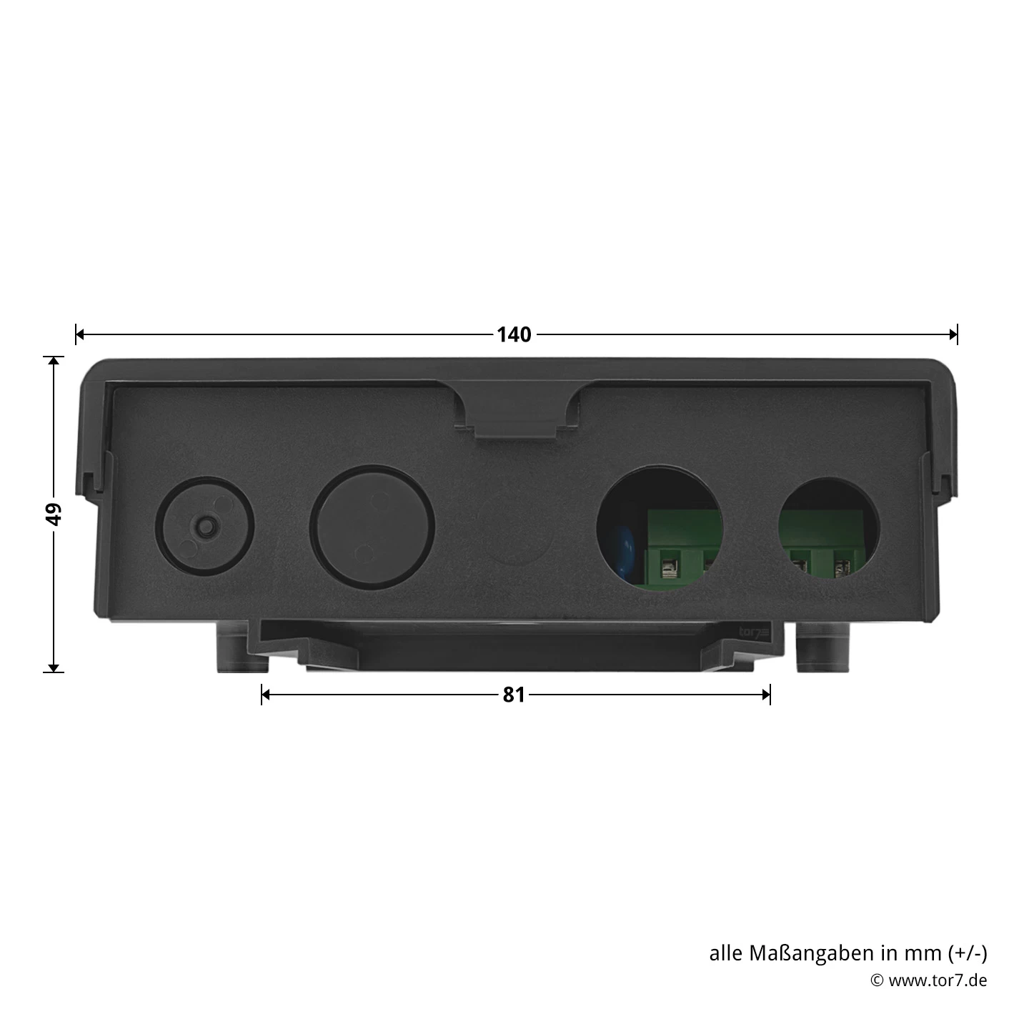 - Maße Auswerteeinheit (B x H x T): 140 x 130 x 50 mm