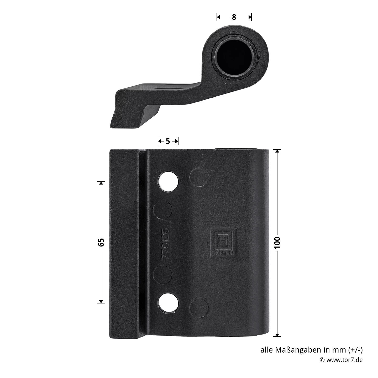 Hinweis: Die Hörmann Entlastungsrolle 400 mm, M12, DIN links, zwischenliegend ist in ihrer Zusammenstellung nur für links angeschlagene 4-gliedriege Falttore (0:4-Konfiguration) geeignet. Dasselbe Teil wird als Hörmann Entlastungsrolle 400 mm, M12, DIN rechts, zwischenliegend auch für rechte Tore angeboten.