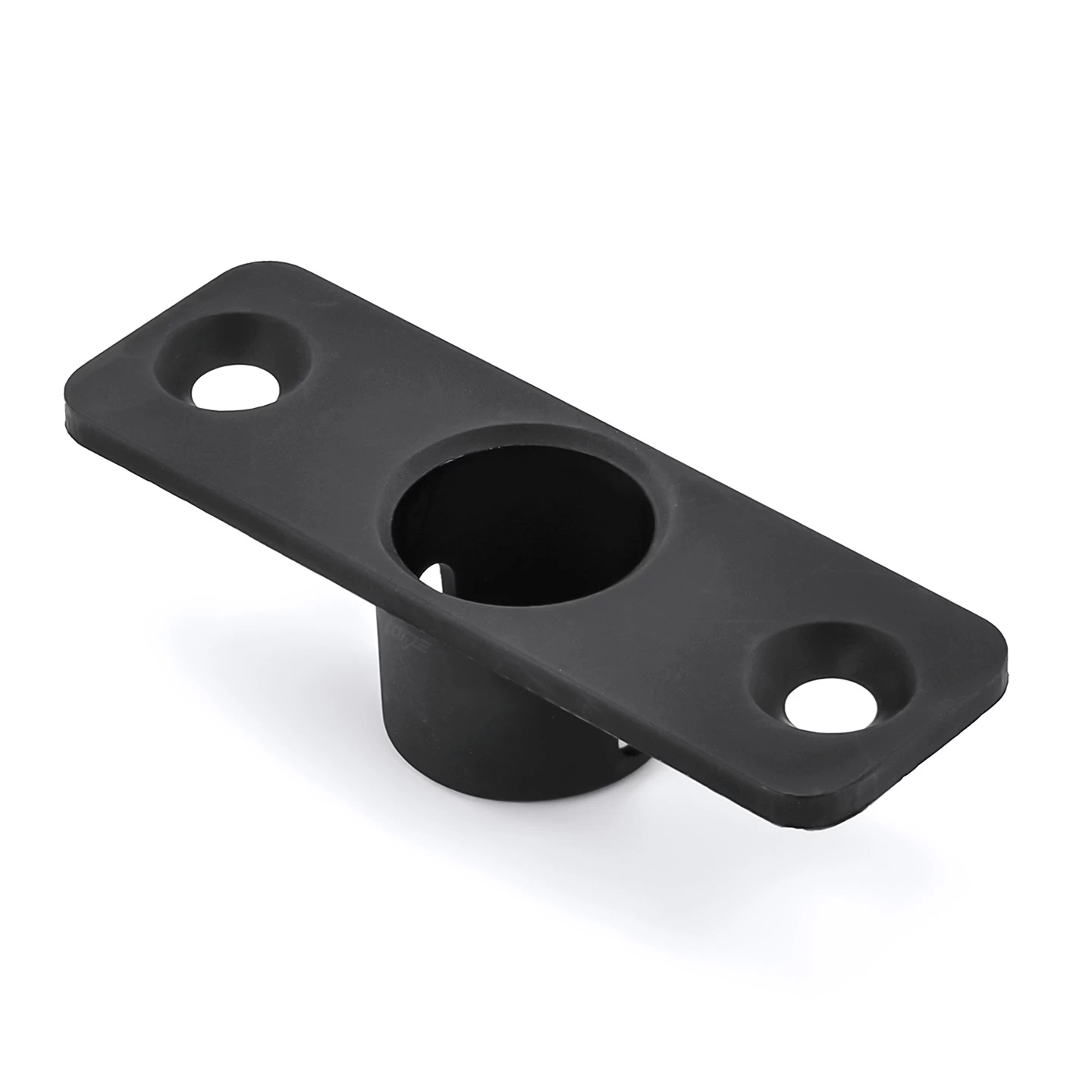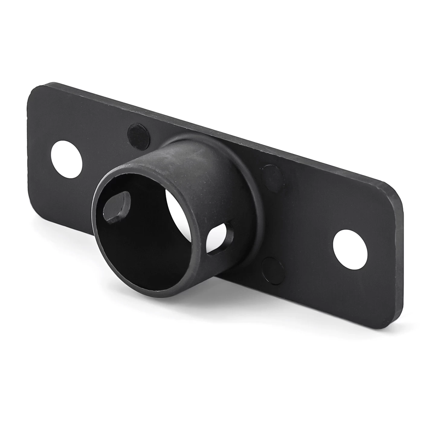 Die hier erhältliche Buchse wird genau über den Austrittspunkt der Verschlussstange am Torflügel angebracht. Hierfür stehen Bohrungen für zwei Befestigungspunkte zur Verfügung. Je nachdem, ob die Verriegelung nur in eine oder in beiden Richtungen nach oben und unten erfolgt, werden pro Torflügel ein bis zwei dieser Bauteile benötigt. Es ist dabei zu beachten, dass die Hörmann Führungsbuchse Verschlussstange, 16 mm nur für runde Stäbe geeignet ist, deren Durchmesser ebenfalls diese 16 mm betragen. Sind dagegen flache, im Querschnitt rechteckige Stäbe vorhanden, so ist das Teil ungeeignet.
