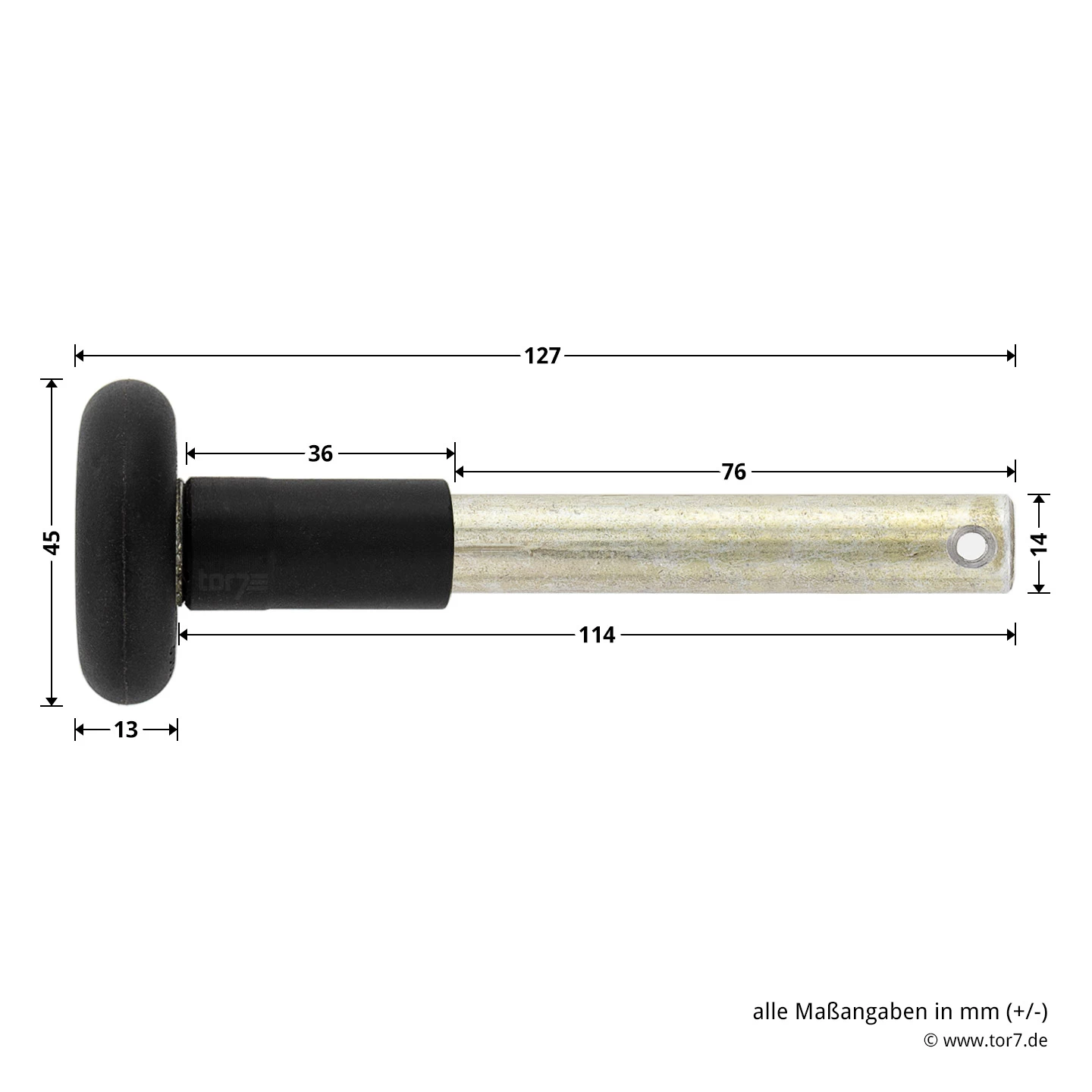 Die Hörmann Laufrolle vom Typ KS-14 eignet sich speziell für Hörmann Industrie-Sektionaltore der Ausführung DPU mit Direktantrieb S75 / S140 und kann auch nur für diese Tortypen verwendet werden. Achten Sie daher bei der Auswahl auf die Kompatibilität zu Ihrem Sektionaltor. Verwendet wird die Laufrolle bei den Baureihen 40 mit Produktionszeitraum bis 2013 und 50 mit Produktionszeitraum bis 2021. Hierbei sorgt die Laufrolle für die notwendige Laufruhe der Sektion und stellt somit die Leichtgängigkeit im Torbetrieb sicher. Beschädigte oder defekte Bauteile sollten umgehend getauscht werden. Die Achse ist mit einer Splintbohrung versehen und die Laufrolle mit einem Kugellager aus verschleißarmen Kunststoff gefertigt. Qualität und Materialgüte garantieren einen langjährigen Einsatz auch bei hohen Betätigungszahlen.