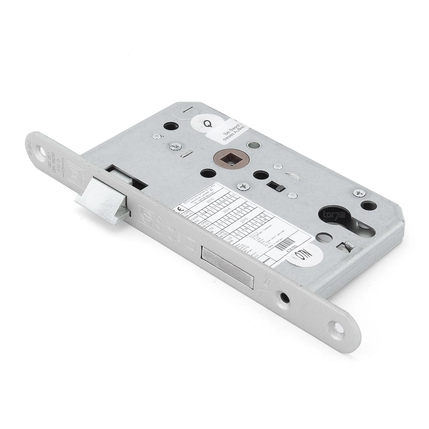 Das Hörmann Panikschloss ECO 112, Funktion D, auswärts wird hier als Einsteckschloss angeboten. Dieses ist mit einer speziell geteilten Vierkantnuss ausgestattet, sodass sich die beiden Drücker unabhängig voneinander bedienen lassen. Weiterhin ist eine Öffnung für einen Standard-Profilzylinder (PZ) vorhanden. Deren mittlerer Abstand zur Stulpaußenkante (Dornmaß) beträgt 65 mm. Die Funktion D wird auch als Durchgangs- oder Feuerwehrfunktion bezeichnet. Sie ist bei der hier erhältlichen Version auswärts zunächst nur von der Innenseite in Fluchtrichtung nach draußen zu bedienen. Nach erfolgter Panikbedienung bleibt die Tür jedoch komplett entriegelt und kann von beiden Seiten aus betätigt werden.