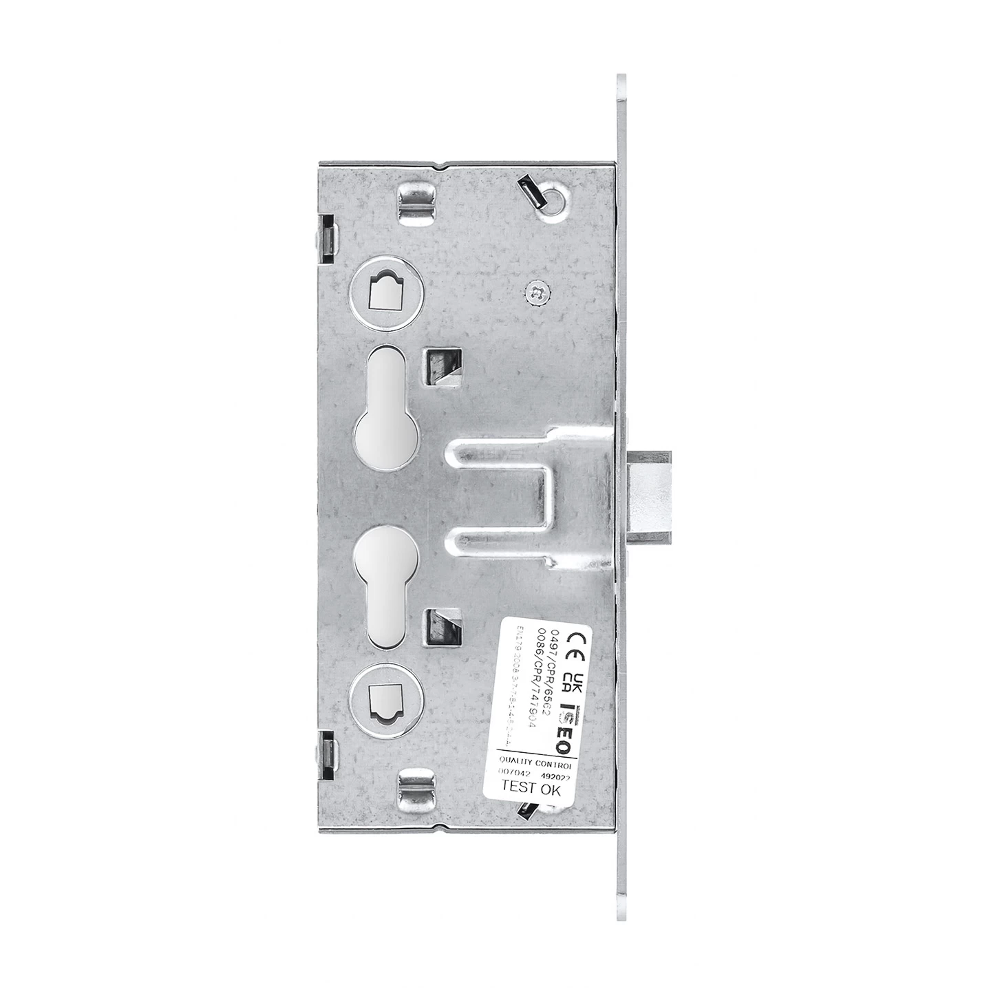 Das Hörmann Panikschloss mit Wechselfunktion E eignet sich für den Einsatz bei Hörmann Stahlblechtüren der Ausführung H8-5, Quadro, sowie MZ und kann ausschließlich bei den genannten Typen als Ersatzteil oder bei Erstausstattung genutzt werden. Die Panikfunktion E wird hierbei notwendig, wenn die Tür mit einer Wechselgarnitur, also einer Drücker/Knauf-Kombination, ausgestattet ist und in Fluchtrichtung dauerhaft der Durchgang gewährleistet sein muss, wie beispielsweise bei Flucht- oder Rettungswegen. Montiert werden kann diese Schlossausführung an links oder rechts angeschlagenen Türen. Zudem ist dieses für die Verwendung eines handelsüblichen Profilzylinders PZ-gelocht und für den Einsatz eines 9 mm Vierkantstift vorgesehen. Der Austausch gestaltet sich durch die Passgenauigkeit besonders einfach und zeitsparend. Die vorhandene Wechselgarnitur kann weiterhin genutzt werden.