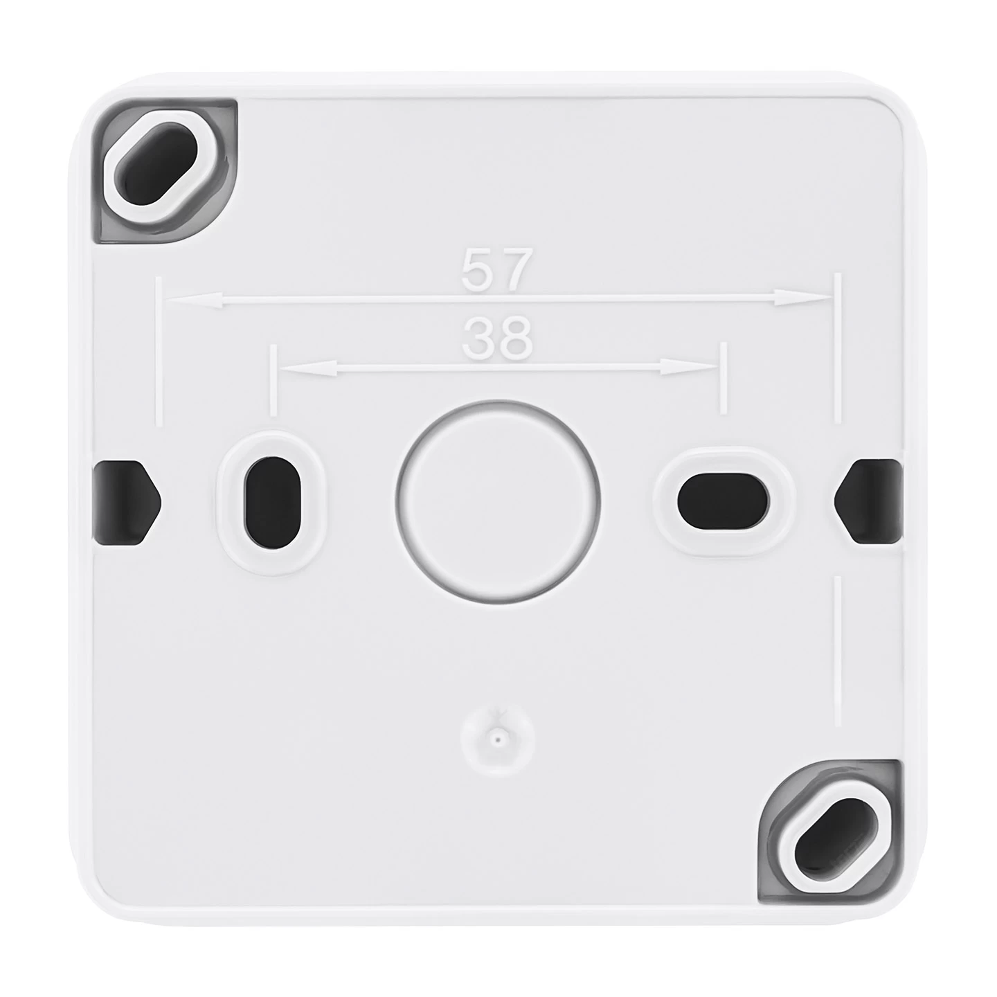 Der Hörmann Radartaster FSR1 868-BS in der Farbe weiß ist ein berührungsloser Sender, der zur Bedienung von Hörmann Torantrieben oder dem Hörmann Türantrieb PortaMatic genutzt werden kann. Die Signale werden hierbei über die innovative Hörmann BiSecur Funktechnologie übertragen, weshalb für das Anlernen ein BiSecur- oder 868 MHz-Festcode-Handsender vorhanden sein muss. Die Betriebsspannung des Radartasters liegt bei 100 – 240 V AC. Durch die berührungslose Schalttechnologie lassen sich Türen und Tore öffnen, ohne jeglichen Tastendruck oder sonstigen Berührungen mit Bedienelementen. Das garantiert ein Höchstmaß an Hygiene und vermeidet die Verbreitung von Viren über viel genutzte Oberflächen. Der Taster kann zudem als Impulsgeber für Antriebe oder andere elektrische Verbraucher mit BiSecur Funkempfänger genutzt werden. Weitere Produktvorteile sind die einstellbare Reichweite zwischen 10 – 50 cm, sowie die einstellbare Beleuchtung. Montiert werden kann der Taster als Unterputz- oder durch die beiliegende Aufputzdose auch als Aufputzausführung.