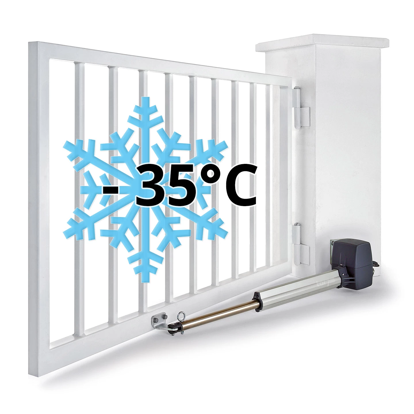Mit einem elektrischen Torantrieb können Sie Ihr Einfahrtstor ganz einfach per Handsender aus dem Auto heraus bedienen. Um ein Tor auch in den Hochlagen mit eisigen Temperaturen per Antrieb steuern/bewegen zu können, wird hier speziell der Hörmann RotaMatic Drehtorantrieb mit Heizung angeboten, die das Festfrieren und damit Blockieren des Antriebs verhindert. Bei diesem ist im Antriebsprofil zusätzlich eine Stabheizung eingebaut, dank welcher der Antrieb auch bei Frösten bis zu -35 °C einsetzbar ist.