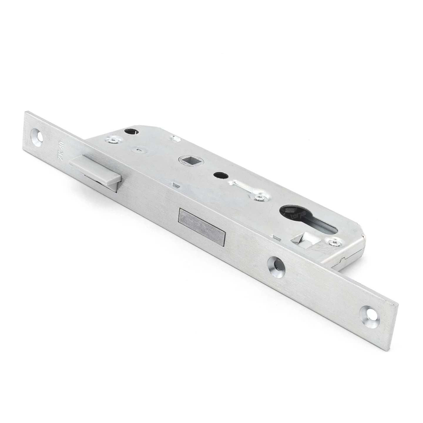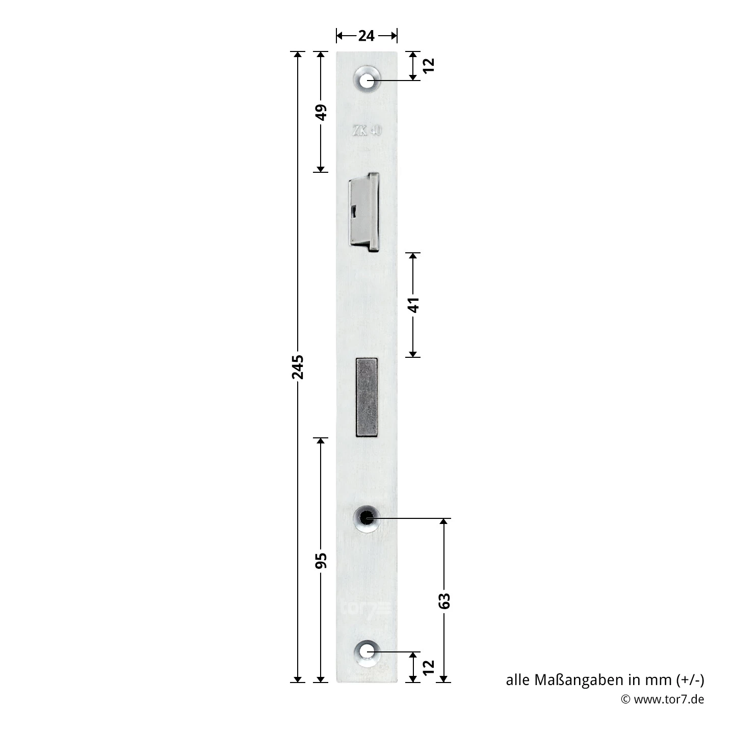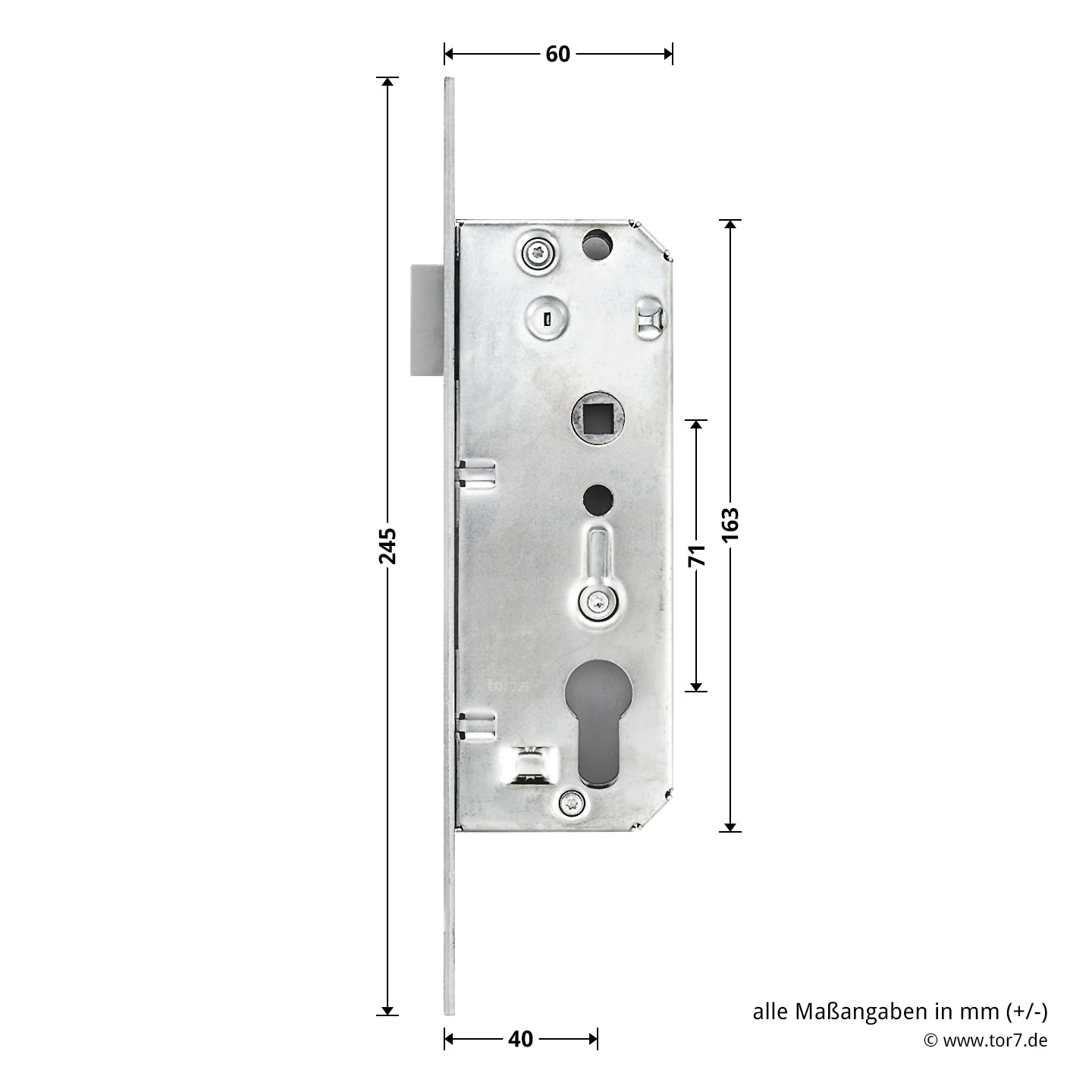 Das Hörmann Schlupftür-Schloss eignet sich speziell für Hörmann Schwingtore der Ausführung DF80, DF95 und DF 98 und wird bei diesen Tortypen für die Schlupftür mit Türanschlag DIN rechts benötigt. Die Schlupftür ist für einen ordnungsgemäßen Verschluss und einer Sicherung vor unbefugtem Zutritt mit einem Einsteckschloss mit 2-tourig ausfahrbarem Riegel gesichert. Zudem erfolgt über die Drückernuss die Bedienung der Türfalle mit dem Türdrücker. Bei Defekten der vorhandenen Schlossausführungen können Funktionsstörungen oder ein nicht ordnungsgemäßer Türverschluss auftreten, weshalb ein rechtzeitiger Austausch empfehlenswert ist. Die PZ-Lochung dieses Ersatzschlosses erlaubt die weitere Nutzung des vorhandenen oder die eines handelsüblichen Profilzylinders. Passgenaue Schlossabmessungen garantieren einen problemlosen Austausch und eine langjährige Funktion an der Schlupftür des Schwingtores. Für links angeschlagene Schlupftüren erhalten Sie das passende Ersatzschloss ebenfalls in unserem Shop.