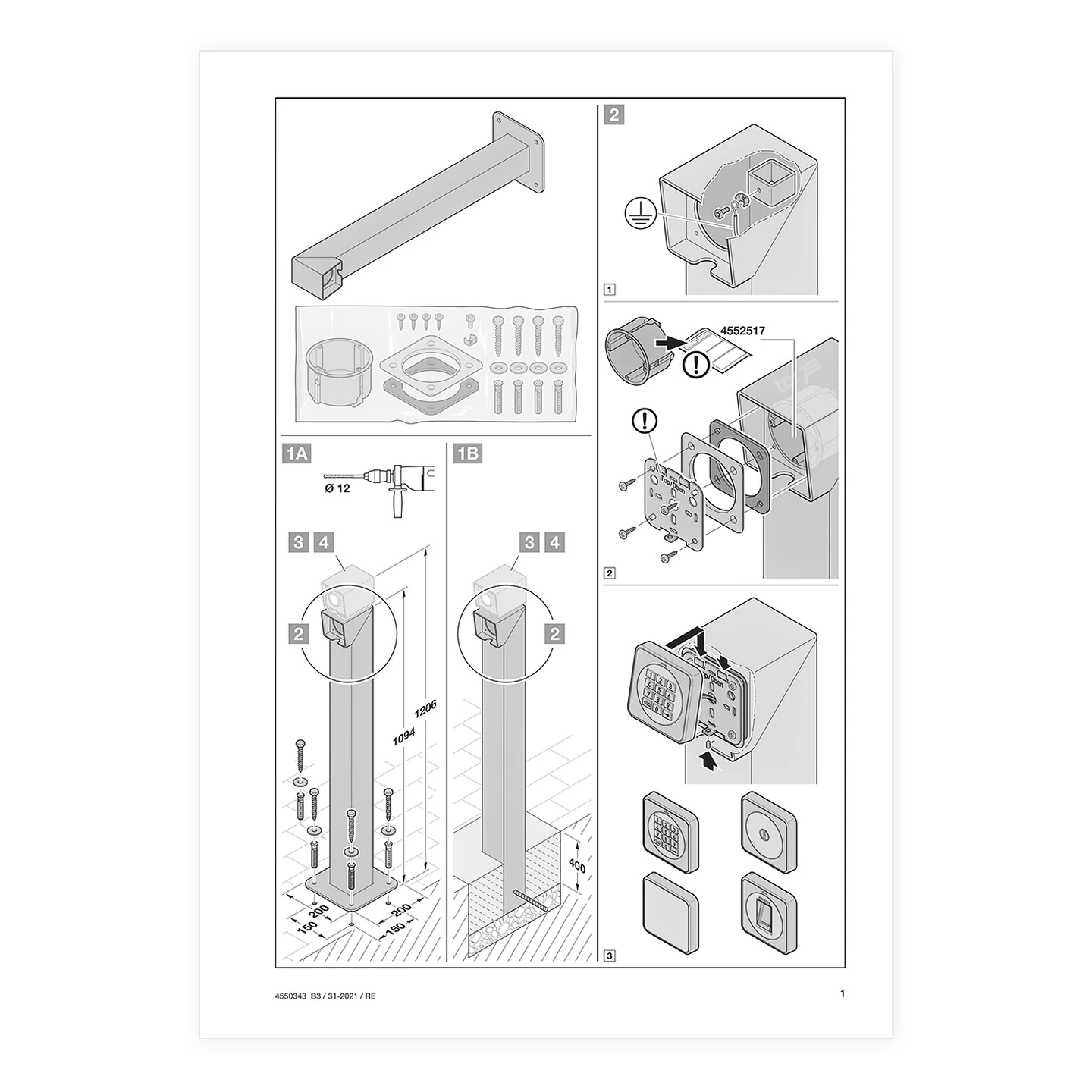 Die Standsäule STN 1 ist auf das folgende Hörmann Zubehör im neuen 80 x 80 mm Format ausgerichtet: