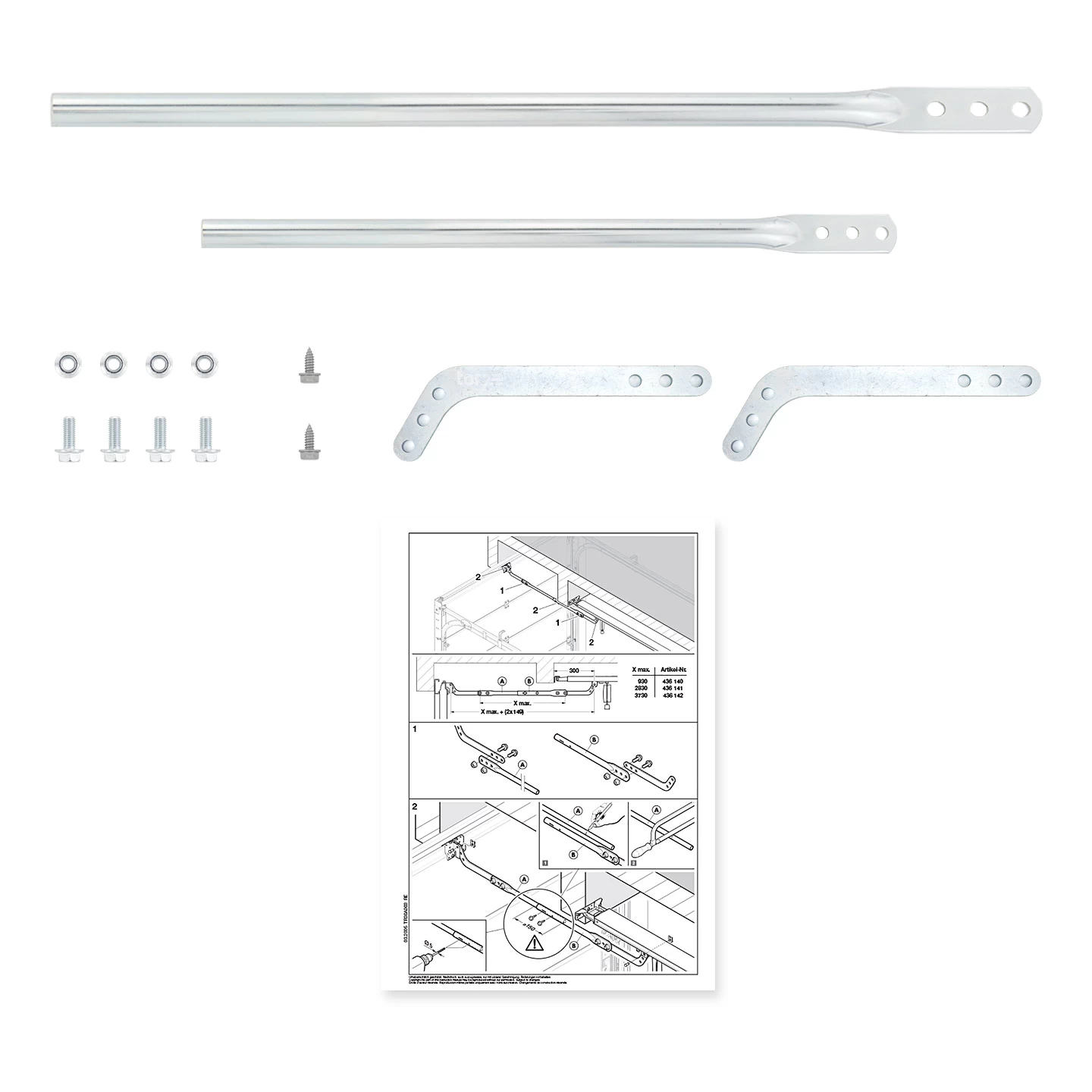 Bei dem Hörmann Verlängerbaren Tormitnehmer VLM 3 handelt es sich um eine längere Ausführung eines bei jedem Garagentorantrieb beiliegenden Tormitnehmers. Dank dieses verlängerten Bauteils kann der Garagentorantrieb auch in Garagen mit großem Sturzversatz montiert werden. Der hier angebotene verlängerte Tormitnehmer VLM 3 eignet sich für Garagen mit einem Sturzversatz von bis zu 3700 mm.