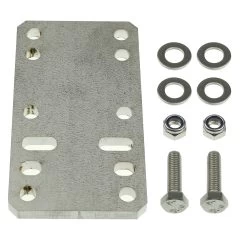 Um einen Drehtorantrieb Hörmann RotaMatic an einem Torpfosten zu montieren, ist auf Grund der gegebenen Platzverhältnisse manchmal noch der Anbau von einem zusätzlichen Beschlag notwendig. Der Einbau einer Hörmann Verlängerungsplatte vergrößert dabei den Abstand zwischen dem Einfahrtstor-Antrieb und dem Zaunpfosten oder Pfeiler. Durch die Anordnung einer Vielzahl von Bohrungen kann eine große Anzahl unterschiedlicher Abstände erreicht werden.