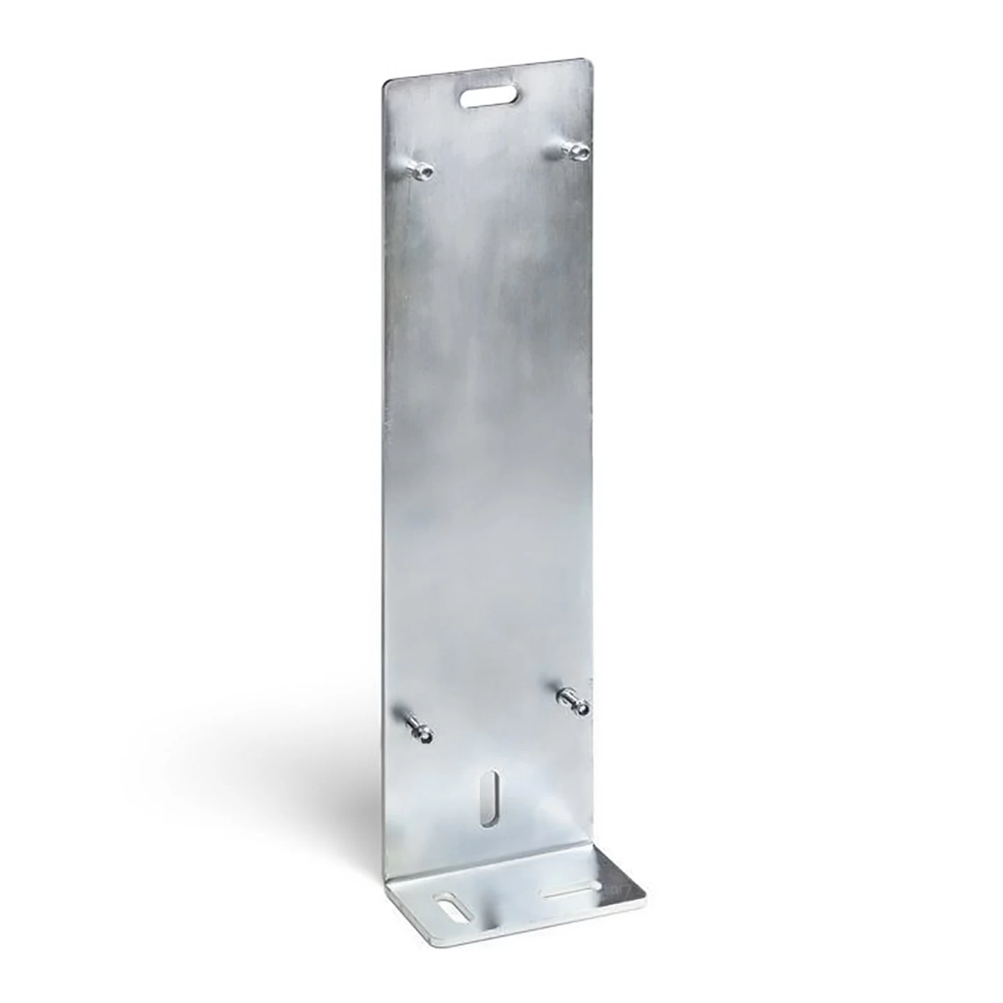 Bei dieser Montagekonsole handelt es sich um einen Winkel aus verzinktem Stahl, der sowohl am Boden als auch an einer Wand oder Decke verschraubt werden kann. Auf der größeren Fläche dieses Winkels sind vier Schrauben angeschweißt, die von ihren Abständen her genau auf entsprechend zu bohrende Löcher am Accu 2.2 passen. Hierüber wird dann der Notakku mit den bei der SOMMER Montagekonsole Accu 2.2 beiliegenden M5-Sechskantmuttern verschraubt, so dass dieser sicher am Einsatzort verankert ist.