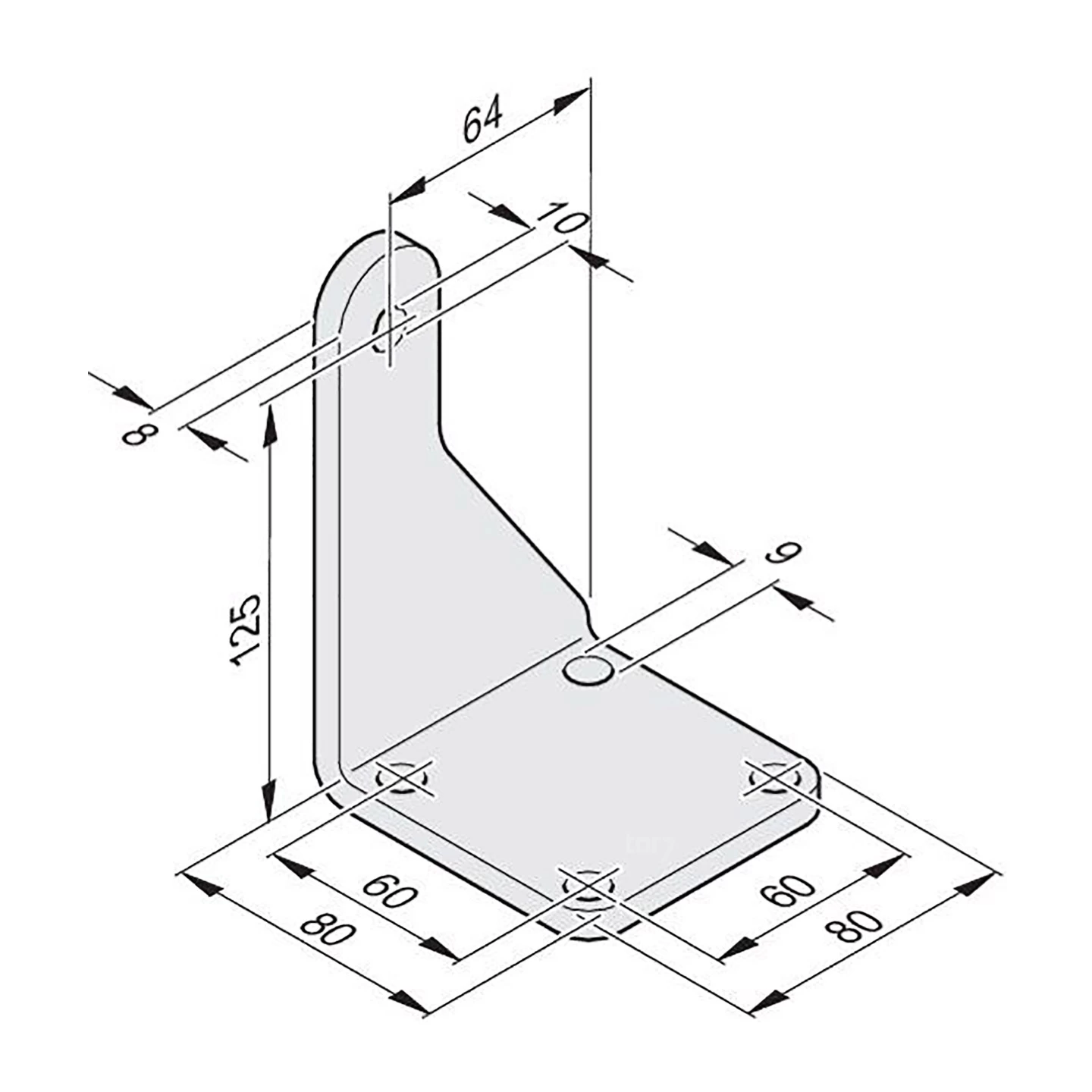 - seitlicher Befestigung zu inneren Rand Grundplatte: 64 mm